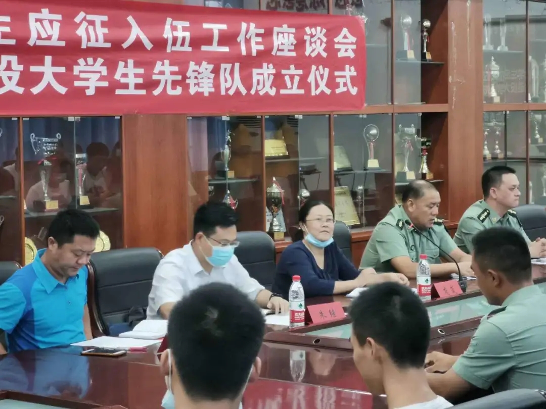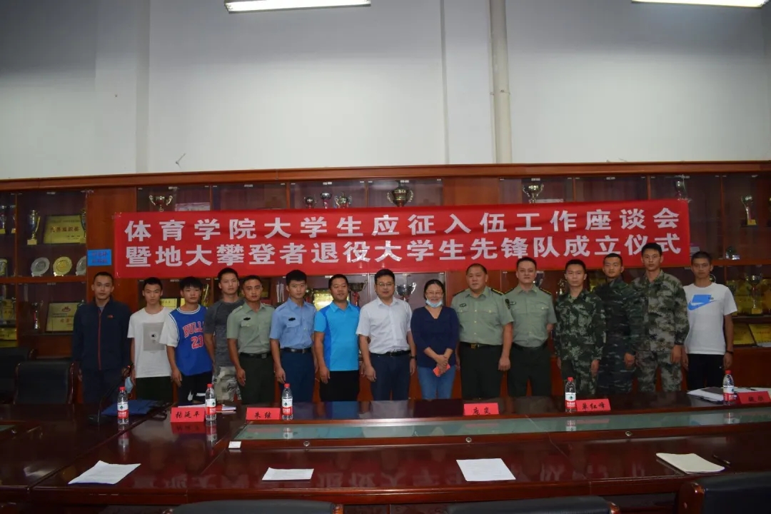 2020年9月10日15:00,我院在体育馆二楼会议室召开了williamhill大学生参军应征工作座谈会暨地大攀登者退役大学生先锋队成立仪式。出席此次会议的领导有武装部副部长单红峰,学工部副部长朱继,武装部老师魏刚,williamhill党总支书记庞岚,williamhill党总支副书记张延平。参与本次会议的人员有williamhill在校的退役大学生和2020年应征入伍学生,以及williamhill部分同学。会议由131181班的陈岳峰同学主持。