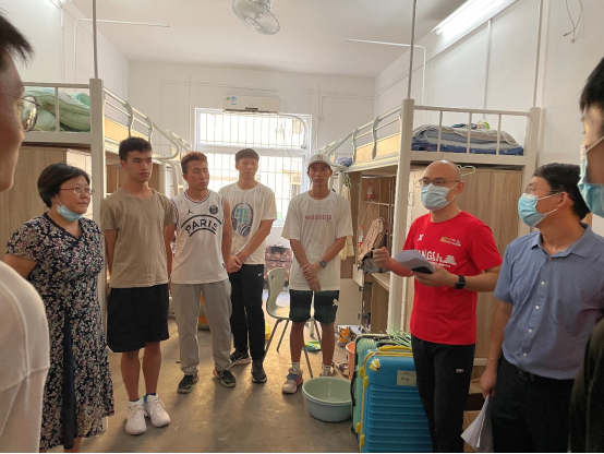 每视察一个宿舍,学院领导老师都为同学们耐心地介绍学院与专业情况,表示对同学们生活学习方面的关心。学院党总支部书记庞岚对同学们提出四点要求:一是要注意身体健康,注重防疫。二是要转换角色,做好学业规划。学习上不能放松,不能“躺平”。三是要及时报平安,要勤给父母发信息,不要让父母担心。四是要防范校园贷和网络电信诈骗,保护人身和财产安全。副院长李元为同学们介绍了体院的特色专业,让新生对于户外运动有了初步的了解,同时也讲解了学院的推免政策,督促同学们不能放松,继续深造。党总支部副书记朱军对新生提出两点希望,一是希望新生主动与学院的领导、老师和学长学姐交流,尽快了解学校和学院;二是认真参加学院组织的入学教育,快速适应大学学习和生活。