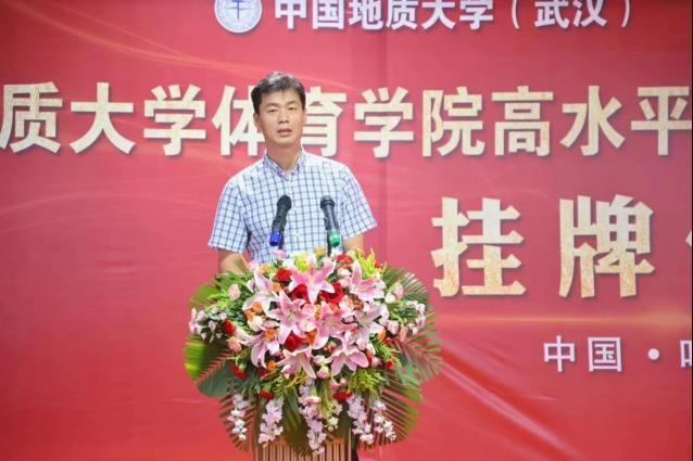 郎总首先对到来的一行领导表示热烈欢迎,并介绍了体育人俱乐部的建设与主要成果和特色体育的基本情况。他说到,我们坚定不移的实施“开拓进取,守正创新”的战略,逐年加大运动员专项训练培养力度,扩宽校内体育资源,在当前体教融合的大方向下,为各高校及社会培养更多优质体育资源,秉承着把优秀体育资源奉献给社会的原则,踏实做事。中国地质大学williamhill田径项目高水平运动队训练基地的挂牌,意味体育人俱乐部在合作创新上又是一个新台阶。体育人俱乐部将发扬“地大精神、育人传承”的八字方针,与地质大学williamhill共同联手,再创竞技水平新纪元。