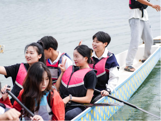 图中左三为中国地质大学(武汉)公管学院大一台湾籍新生赖诗语