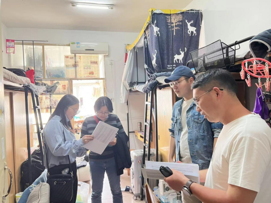 在走访过程中,学院领导老师学生亲切交流。党委书记庞岚详细了解我院学生在疫情防控期间的学习和生活情况,仔细询问在学习生活上所遇到的实际困难,并叮嘱同学们在特殊时期做好防护措施。党委副书记朱军详细介绍了学校近期的疫情防控政策,就学生现场反映的具体问题逐一进行了解答,引导学生树立理性平和、积极乐观的心态。辅导员陈爽老师要求同学们遵守学校疫情防控政策和相关规章制度,强化纪律意识,保持宿舍整洁,注意用电安全,遇到困难和问题及时向学院老师反映。