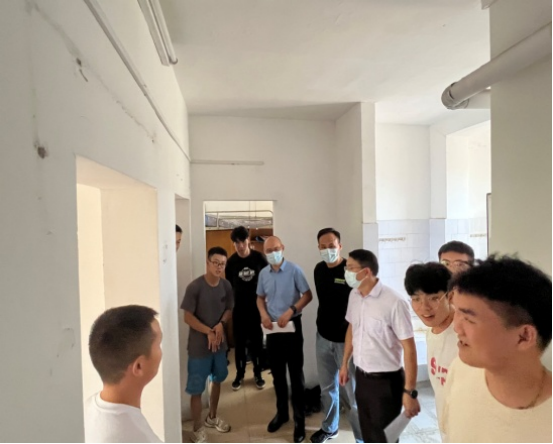 走访研究生宿舍过程中,院长李元深入每间宿舍,认真查看宿舍内的各项设施,耐心细致地和同学们交流,给予生活、学业等方面的建议,并提出以校友为榜样,发扬登山户外人精神。党委副书记朱军对新生提出三点要求,一是要积极参加入学教育,尽快了解熟悉学校和学院;二是要加强与导师沟通交流,做好学习和科研准备工作;三是严格遵守疫情防控政策,做好自身安全防护。副院长游茂林对研究生新生提出了殷切的希望,希望同学们积极肩负起自己的责任,牢记“艰苦朴素,求真务实”的校训,明白大道至简,科研学术无捷径,常坐冷板凳,方可攀高峰。