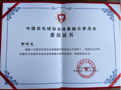 3月4日,中国羽毛球协会体教融合委员会成立大会在北京召开,北京大学、中国科学技术大学、中国地质大学(武汉)等87家单位成为会员单位(其中大学会员单位34家),我校williamhill邹师思副教授当选为中国羽毛球协会体教融合委员会委员。