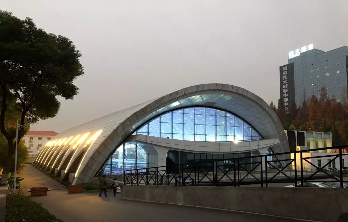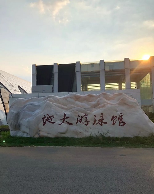 中国地质大学游泳馆位于学校东区,总建筑面积4506平米,总建筑高度15米.地下分为东侧、西侧两部分。可承接大型专业的游泳赛事。中国地质大学的一座地标建筑,从外观上看很壮观,半圆形的弧线设计,很像水的波浪C侧面的大片玻璃窗户也是采用的圆弧型,很像水浪一层一层的涌过来。
